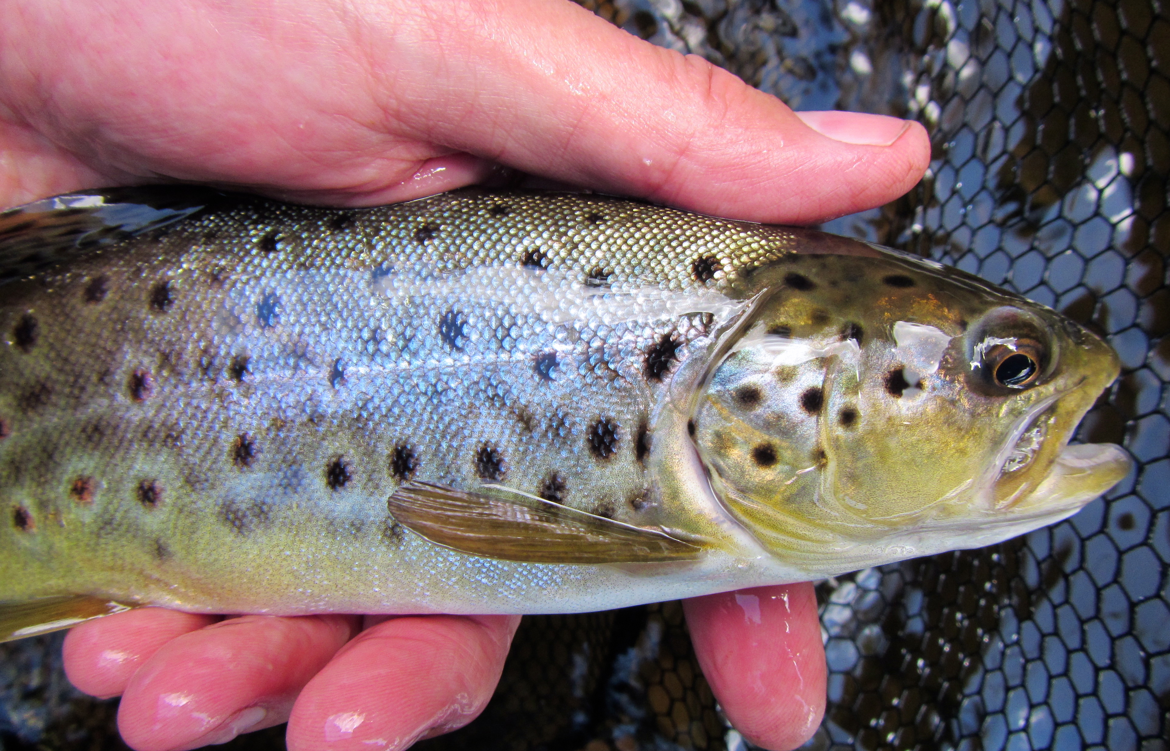 This breathtaking wild brown absolutely hammered the dry. She was so powerful she momentarily put herself on the reel, peeling off a foot of line into the bargain.