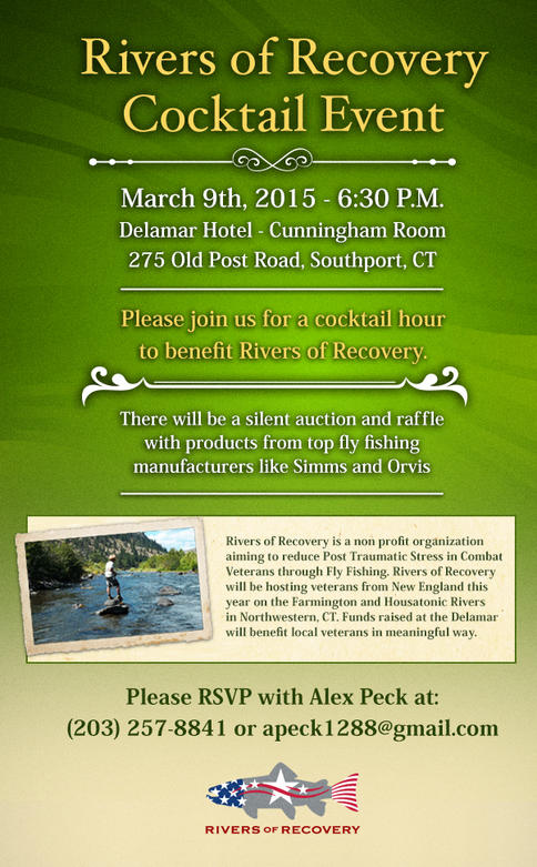 “Hi All, A few of us are throwing together a fundraiser for Rivers Of Recovery at 6:30 on March 9th at the Delamar Hotel in Southport. Rivers of Recovery is a non profit organization that brings veterans of the wars in Iraq and Afghanistan fly fishing throughout the country. I think a lot of you know the healing properties of fly fishing and the program has certainly helped me a ton.