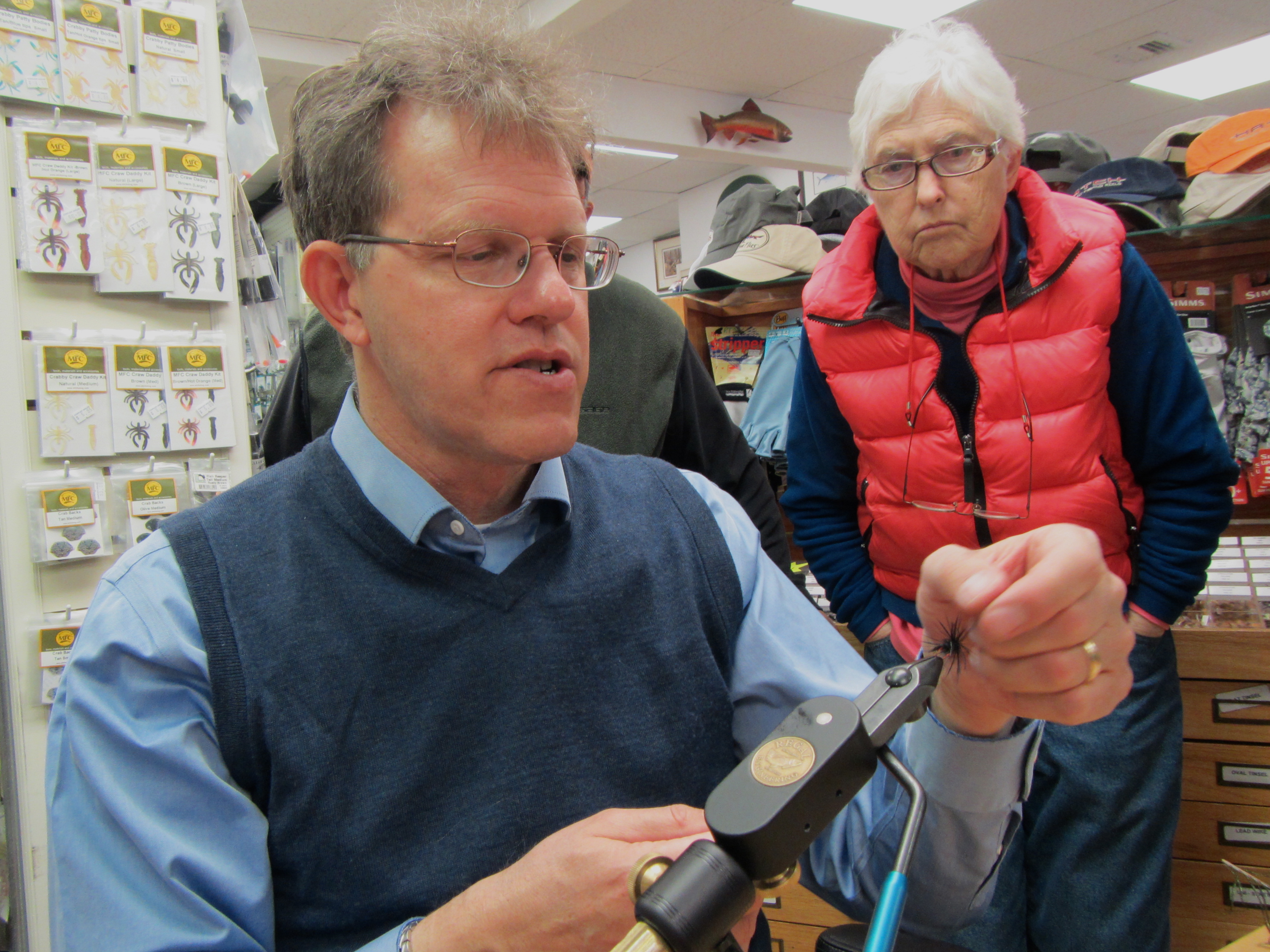 There’s one sure way to get this presenter in a good mood, and that’s to offer to take him out to dinner before the engagement. And so it was that I found myself last night with several members of the Farmington Valley TU Chapter at the Whinstone Tavern in New Britain, CT, with a lovely medium-rare burger, crisp, tasty fries, crunchy deli pickle slice, and a moderately-hopped IPA. Wonderful!