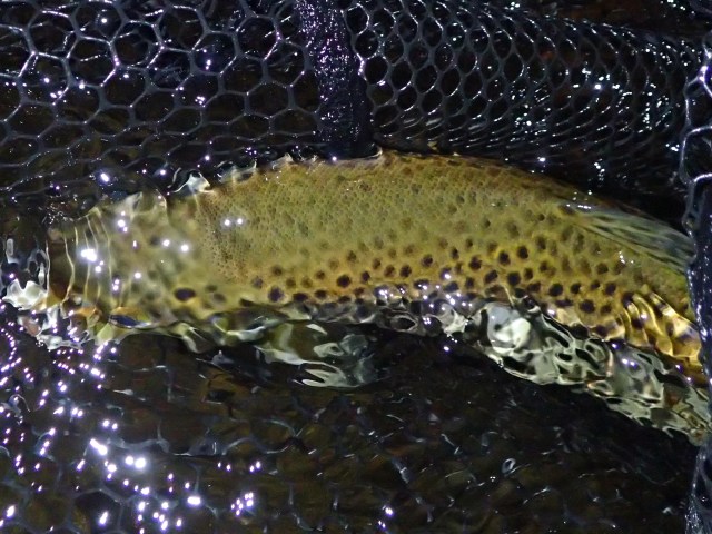 I love sight fishing on rocky flats at night. After I crept up on his position, I watched this bass feed for several minutes before making a cast. Taken on a chartreuse and olive Eelie.