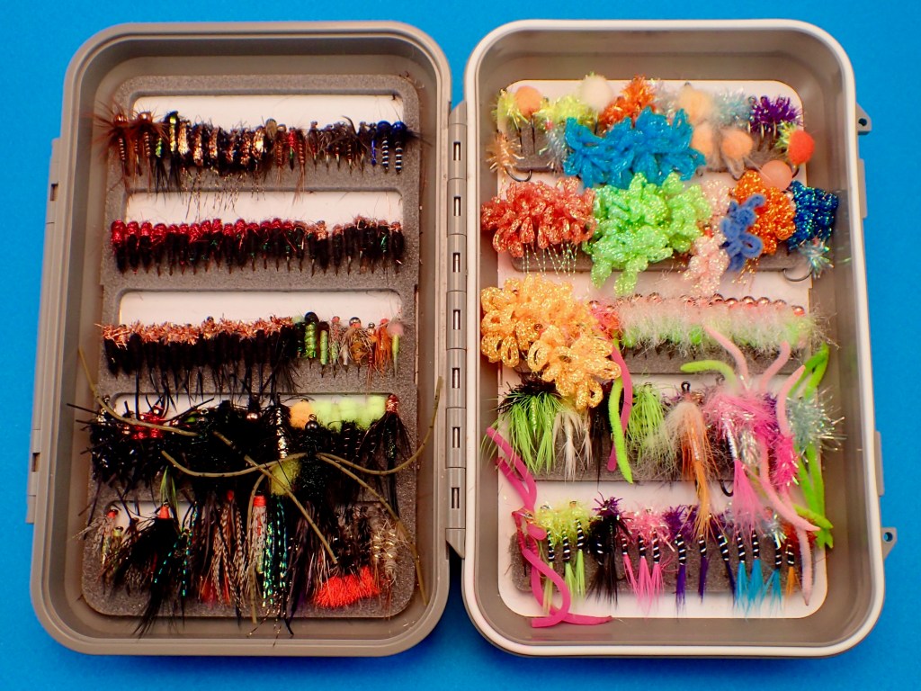 Another November ritual completed: the refilling of the steelhead box. (One of them, at least. This is my main box.) It’s emptiness or fullness before I begin is usually a good indicator of the previous season. Did I go on a lot of trips? (An average number.) Did I lose a lot of flies to the bottom gods or to the unyielding material of a steelhead’s jaw? (Not so much. Slow year.) I will restock the box with old favorites, and perhaps a few new experiments. The order of its contents remains a comfort. Nymphs, soft hackles, stoneflies to the left; eggs, attractors, and junk flies to the right. Such a contrast between dull blacks and browns and the riot of fluorescence. Which patterns will be the hot item this year? Only one way to find out.