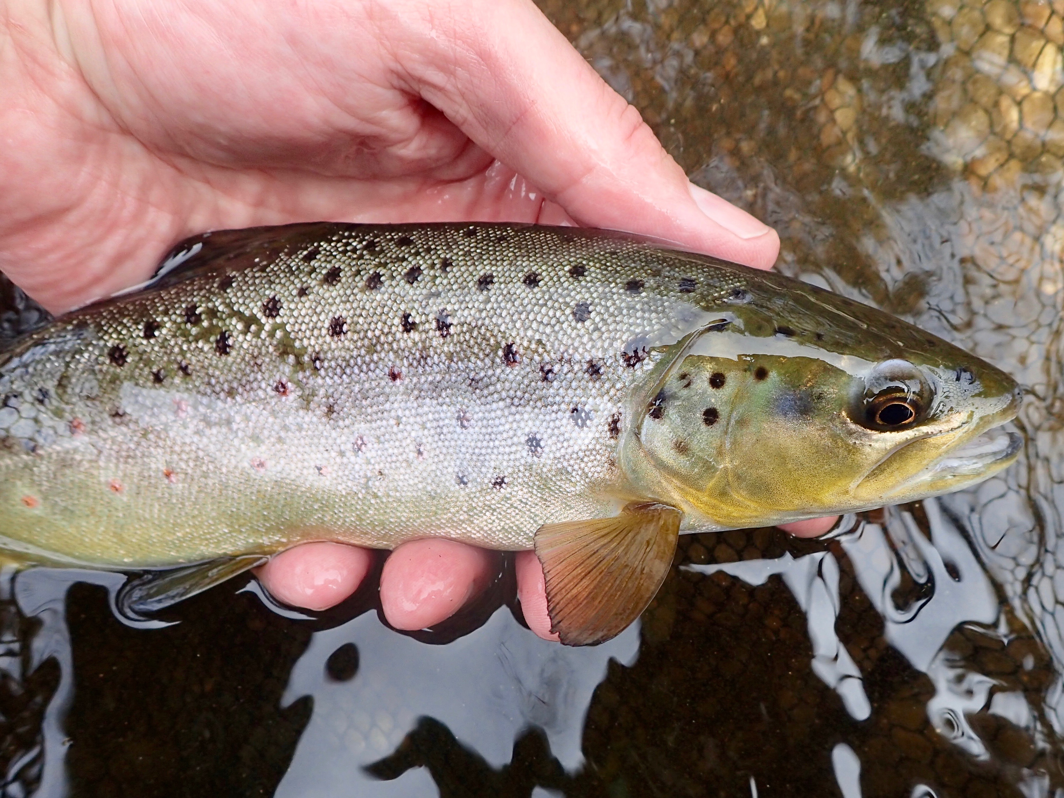 Love these holdover/wild fish. They just refuse to come to net without a furious argument. This guy fought way above his weight class.