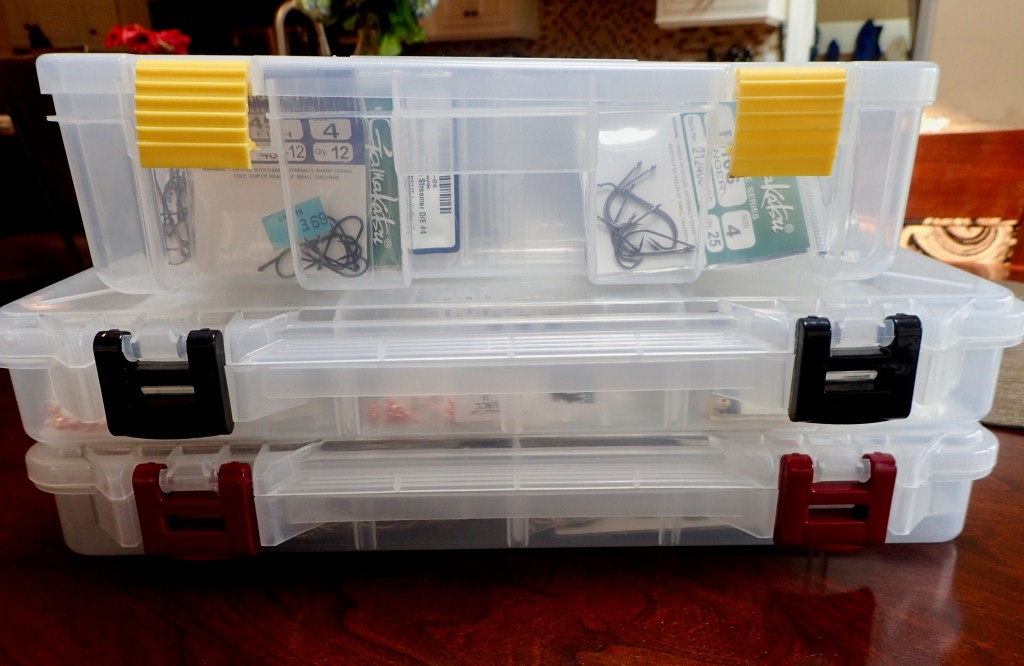 The best system for organizing your fly tying hooks and beads is the one that works for you. In the case of my ever-growing collection of such stuff, that means storage compartment boxes. But not just any boxes. They need to be adjustable, stackable, and easily transportable. Since I’m not fishing this week, I’m using the time to organize the disaster area that is my tying space. I thought I’d share my process of sorting and storing hooks and beads with you.