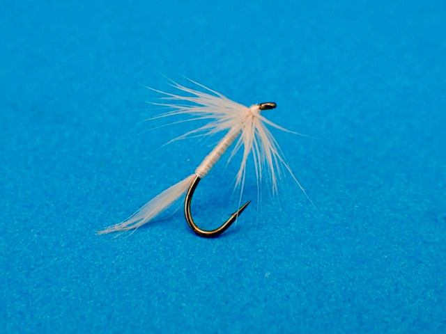 My first casts were made with a three fly team consisting of a sparse, generic bucktail about 3″ long on top dropper, Mark Gustavson’s Lil’ Bunky in the middle, and a Magog Smelt bucktail on point. There was a substantial current and my presentation was a greased line swing. I had action on every single cast, sometimes on all three flies — except it wasn’t bass. It was weeds. Lots and lots of weeds. When it became clear that flora was all I’d be hooking, I decided to search for fauna elsewhere.