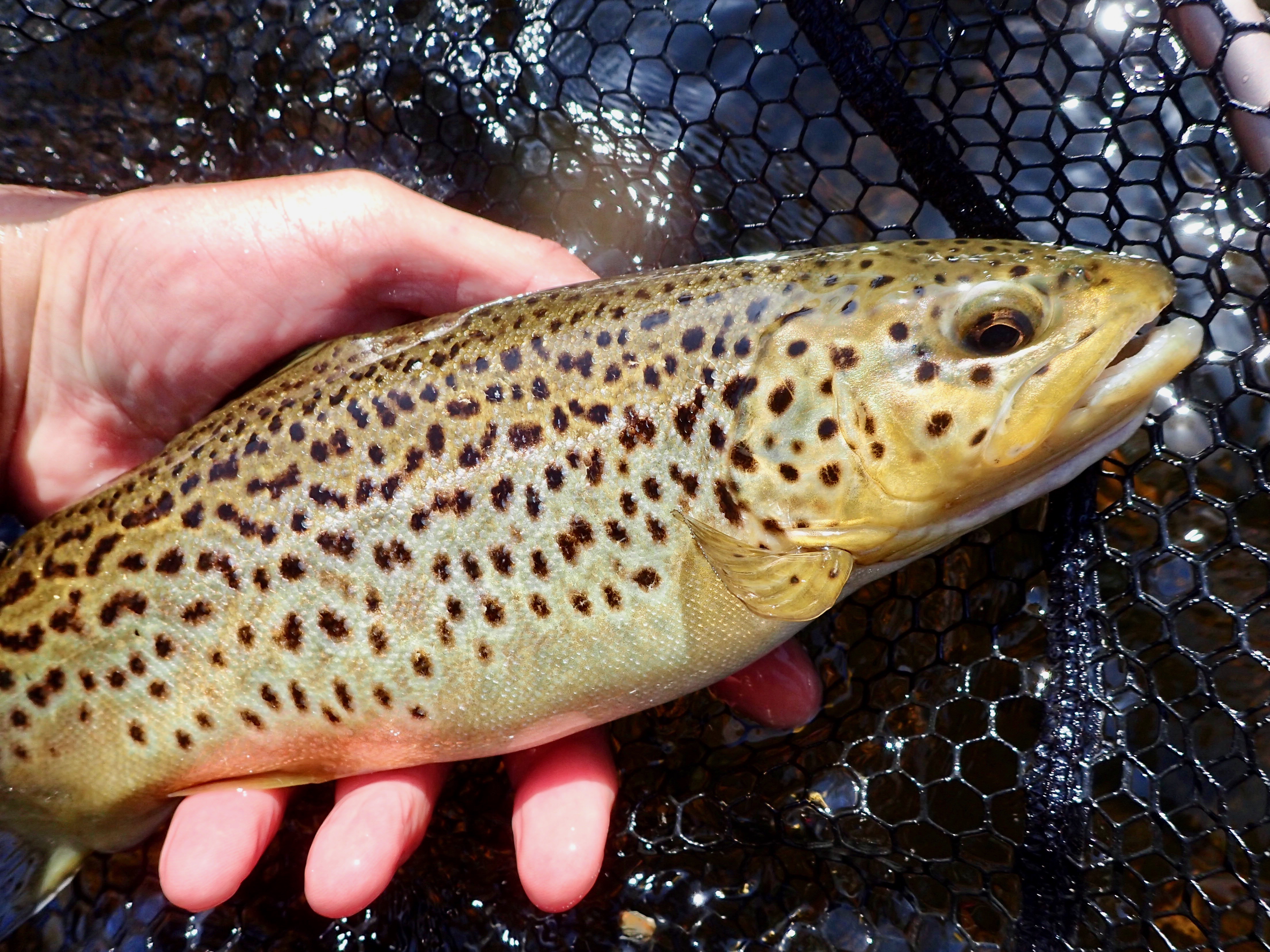 While there were plenty of stocked rainbows and browns in the mix, there’s something about the Hendrickson hatch that brings out the wild things. Here’s a lovely some-teen wild brown with unique spotting on the pectoral fins, taken by Chris on a dry fly. Nice work, fellas!