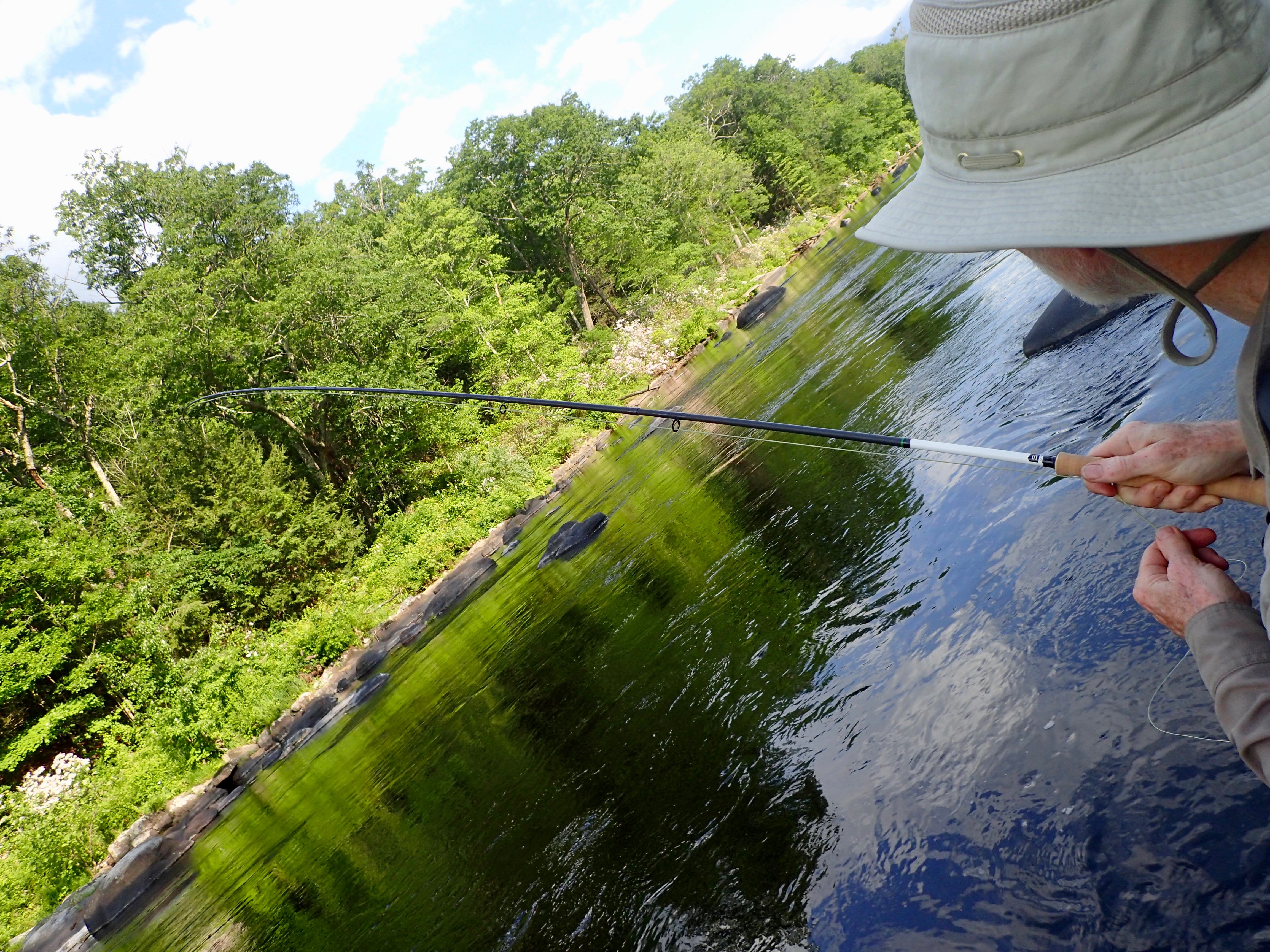 All the way from Merry Old England! Here’s Nev putting his TFO TiCr five-weight through its paces. He’s well on his way to becoming a dangerous striper-catching machine.