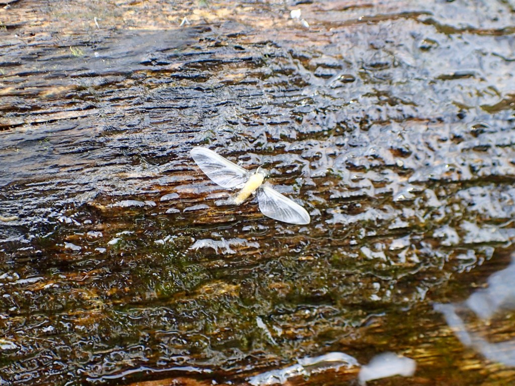 I fished for pleasure Wednesday evening, timing it so that I arrived at the mark on the lower river just as the thunderstorms were ending. There were a few small branches littering the roadway, but the water was surprisingly clear and free of debris. As I’d guessed would happen, I beat everyone else to the water and was able to secure some prime real estate. The river was quiet as I entered at 6pm, but the surface soon became dimpled by the tells of feeding fish.