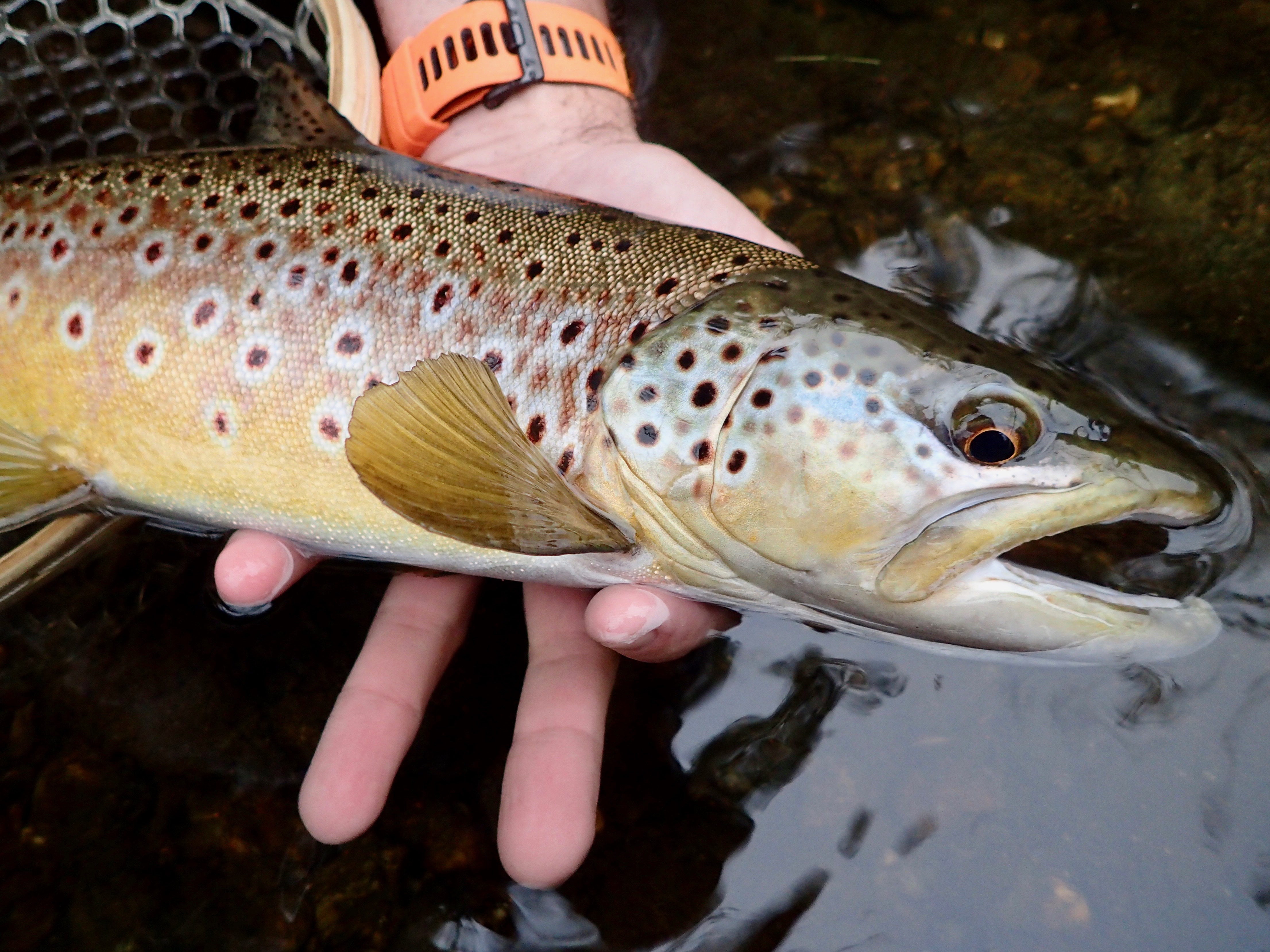 A healthy mid-teens Farmington brown taken on Mike Lawson’s Mayfly Cripple.