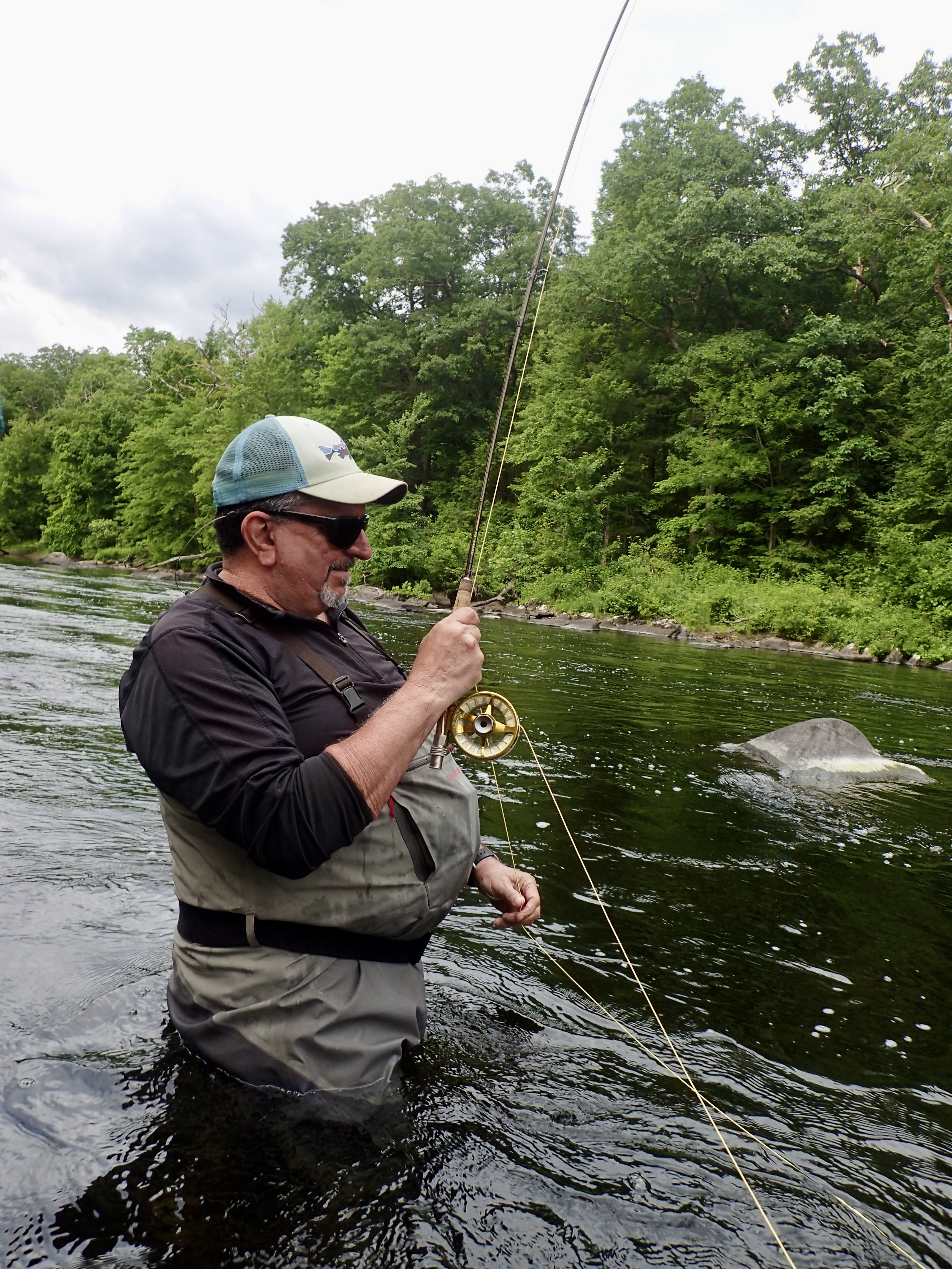 After our lesson, I was feeling ambivalent about fishing, but I had plans to meet “Summer on the Farmington” film director Matthew Vinick, so I headed up to the PTMA. I found him in a snotty boulder field, and while my plan was to start by swinging wets, there was no one(!) in one of the most popular dry fly pools on the river. So I jumped on that.