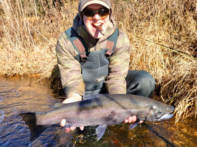 Give that man (Jeff Blood) a ceegar! This is a Salmon River fish from last November taken on Jeff’s fly.
