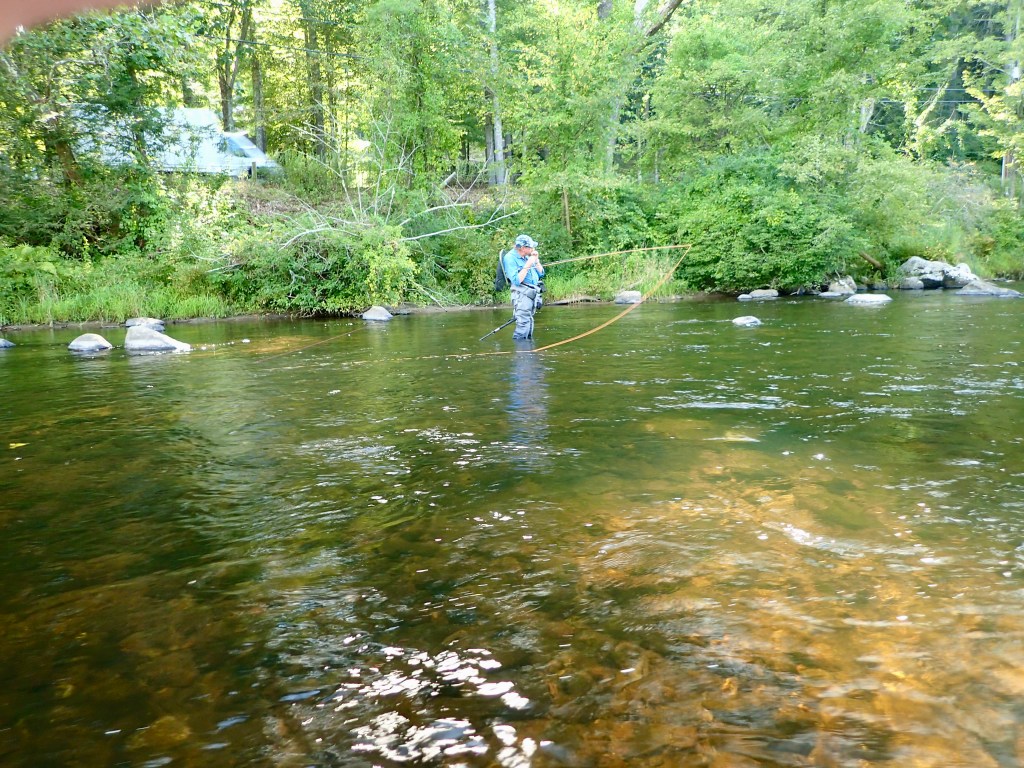 Thursday, August 29: Farmington (Slow). I gave a wet fly lesson to Corey and his son Matt from 3pm-7pm. We started off in the bottom end of the PTMA, but that was not a happening place, so we headed north. Another mark, although quite fishy, was disappointing. Both Matt and Corey had some bumps, but no real hookups. Farther north was the call, and I’ve never seen the area below the dam so crowded. My best guess on the crowds is that anglers thought there might be pre-Labor Day stocking? (There wasn’t.) But we found a very nice section to call our own, and had at it. Ding-ding-ding! It was the winner bell and the dinner bell. Both Matt and Corey brought fish to net, and it was gratifying to see their hard work pay off. Well done, gentlemen!