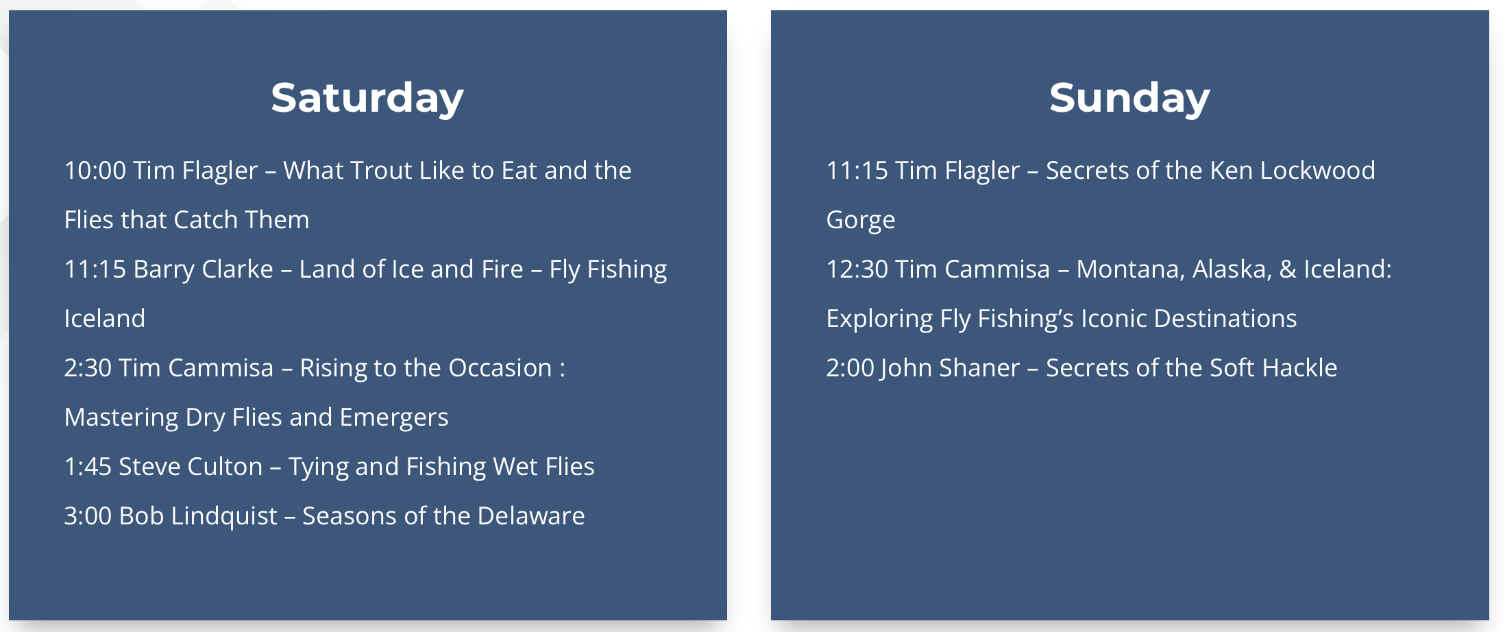 I’m humbled to be a part of this lineup. But you can also see any of the dozens of other master fly tyers on the show floor any time over the weekend.