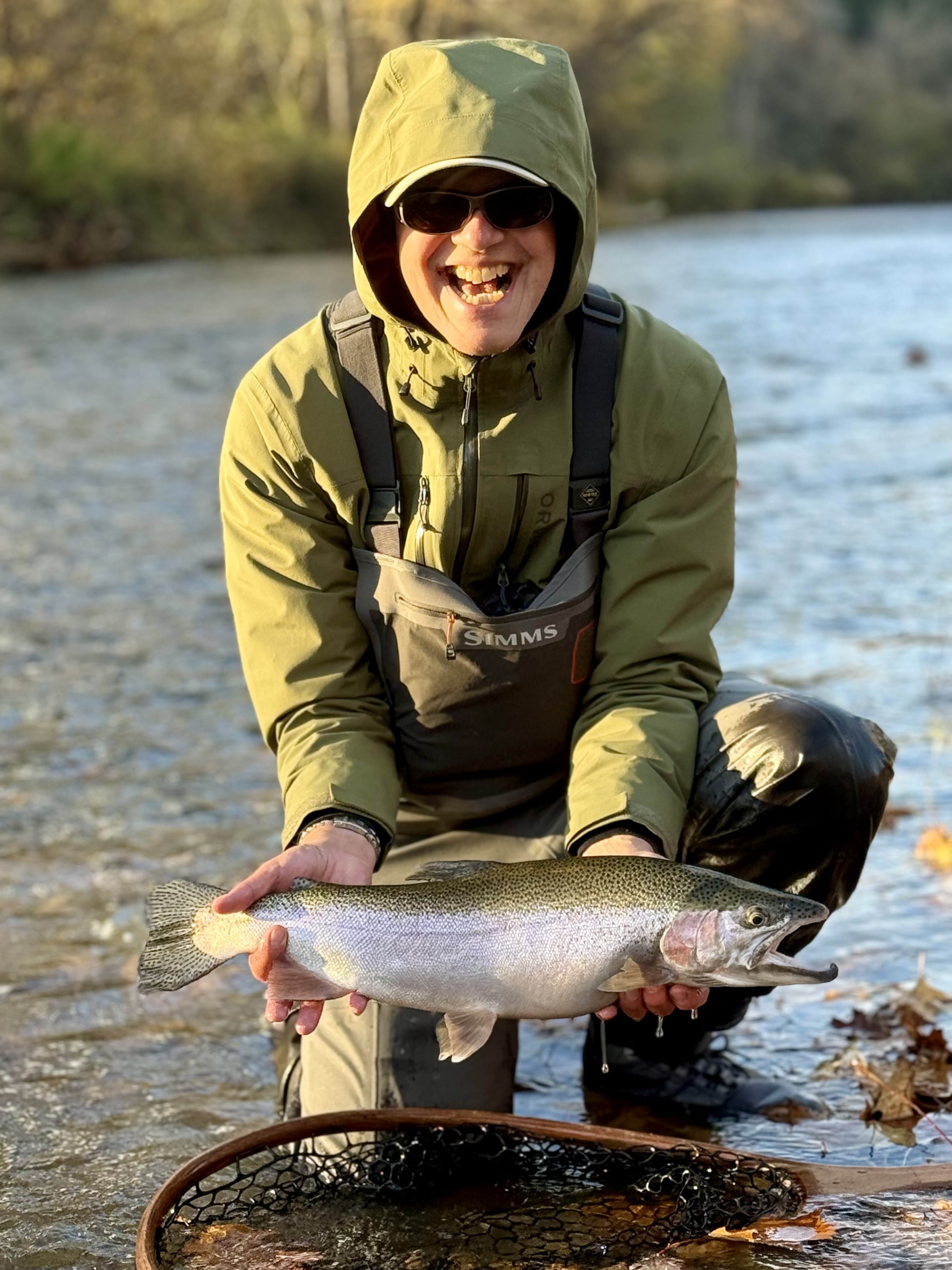 We fished Elk Creek, and the good news/bad news was significantly more water than this time last year, but far fewer fish. Places last year where the steelhead were wedged in like sardines were this year distressingly empty. Low, clear flows on these creeks require a certain level of stealth, and technical casts and drifts. To get dour, on-high-alert steelhead to eat, you’ve got to nail a perfect cast, then make all kinds of technical mends to keep the fly on target. Weight and indicator adjustments are a constant dance you perform until the judges tell you that you’ve got it right.