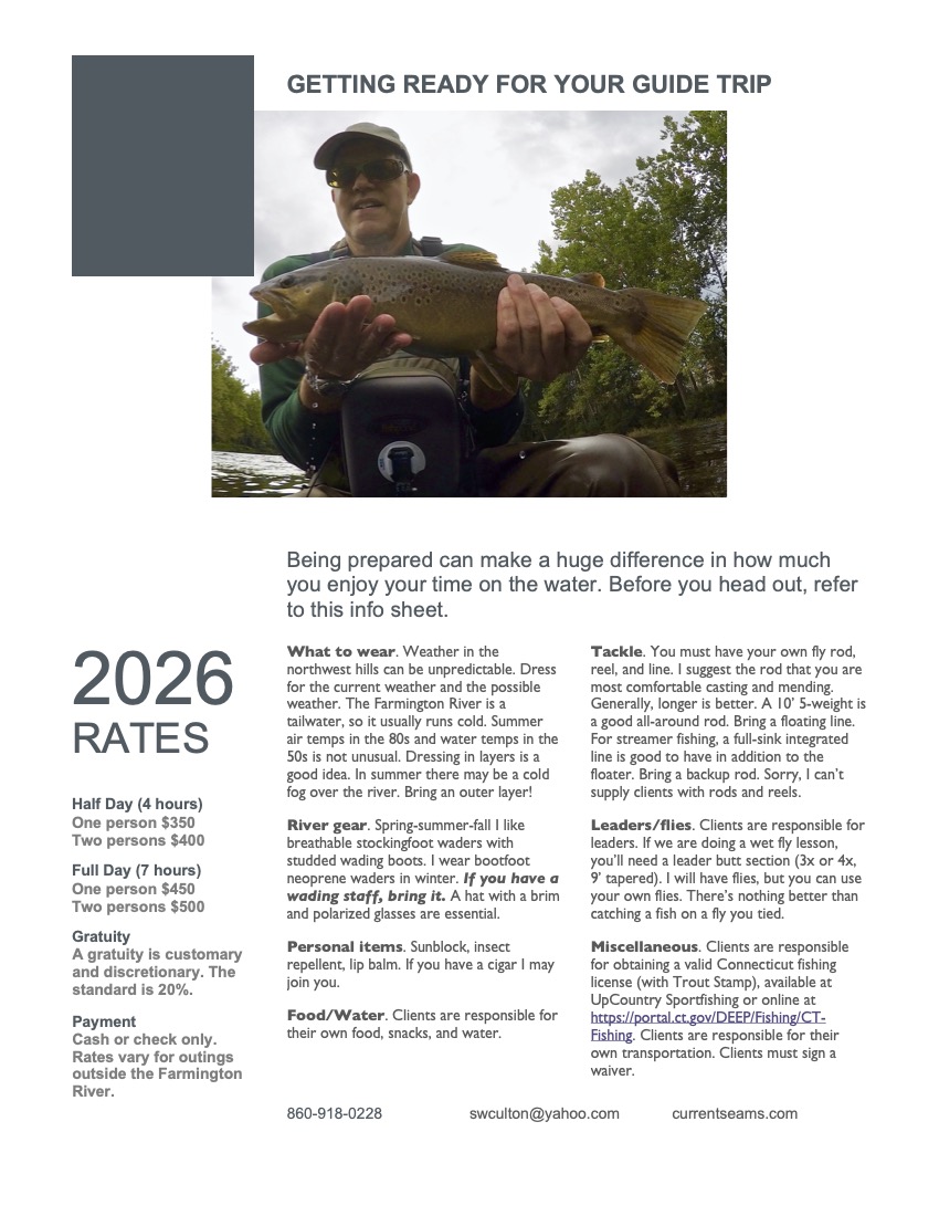 I was so busy with the book in 2025 that I kept my previous year’s rates in place. But, times change. Travel distances get longer, my cost of doing business goes up, inflation is a thing, and my altruism extends only so far. So, we’ve got new rates for 2026. Some things haven’t changed: I’m still a teaching guide; still guiding part-time only; still almost never guiding on weekends; you still need to call or email me to book a date. And — I can’t emphasize this enough — I’m strongly pushing the 4-hour lesson. Anything longer than that, and people begin to fall apart, so 4 hours is the best bang for your buck. I appreciate everyone who’s already booked time with me this year, and I’m looking forward to spending time with you on the water, and helping you improve your angling skills.