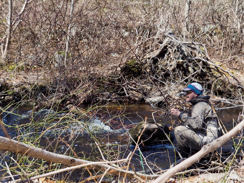 I also spent some time paying attention to the the little changes the stream had gone through over the winter. Brooks like this one are constantly evolving; channels shift, trees fall in, obstructions washed into the system create natural dams, and so on. I also took the time to remove deadfall that served no purpose other than to mess up my drifts. My general rule of thumb is: If it’s alive, it doesn’t get touched. If it’s dead and is small and provides no cover/creates no significant current break/is not being used by a living creature, it can go.