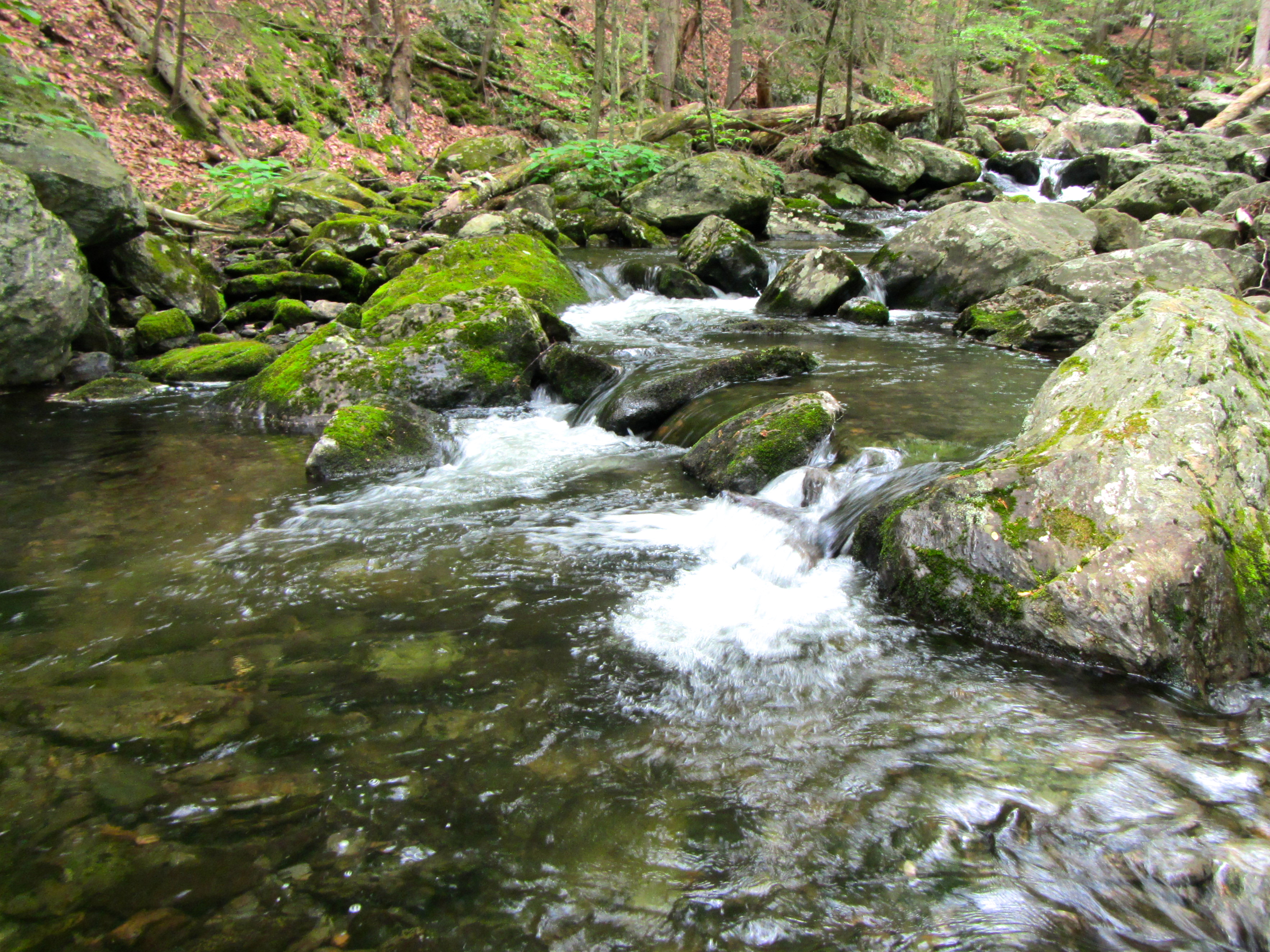 How you can tell it’s mid-June in the Connecticut woods. Our state flower, the mountain laurel, grows wild anywhere there’s shade. Some of the shrubs don’t produce flowers, but plenty of them were decked out in their white streamside finery.