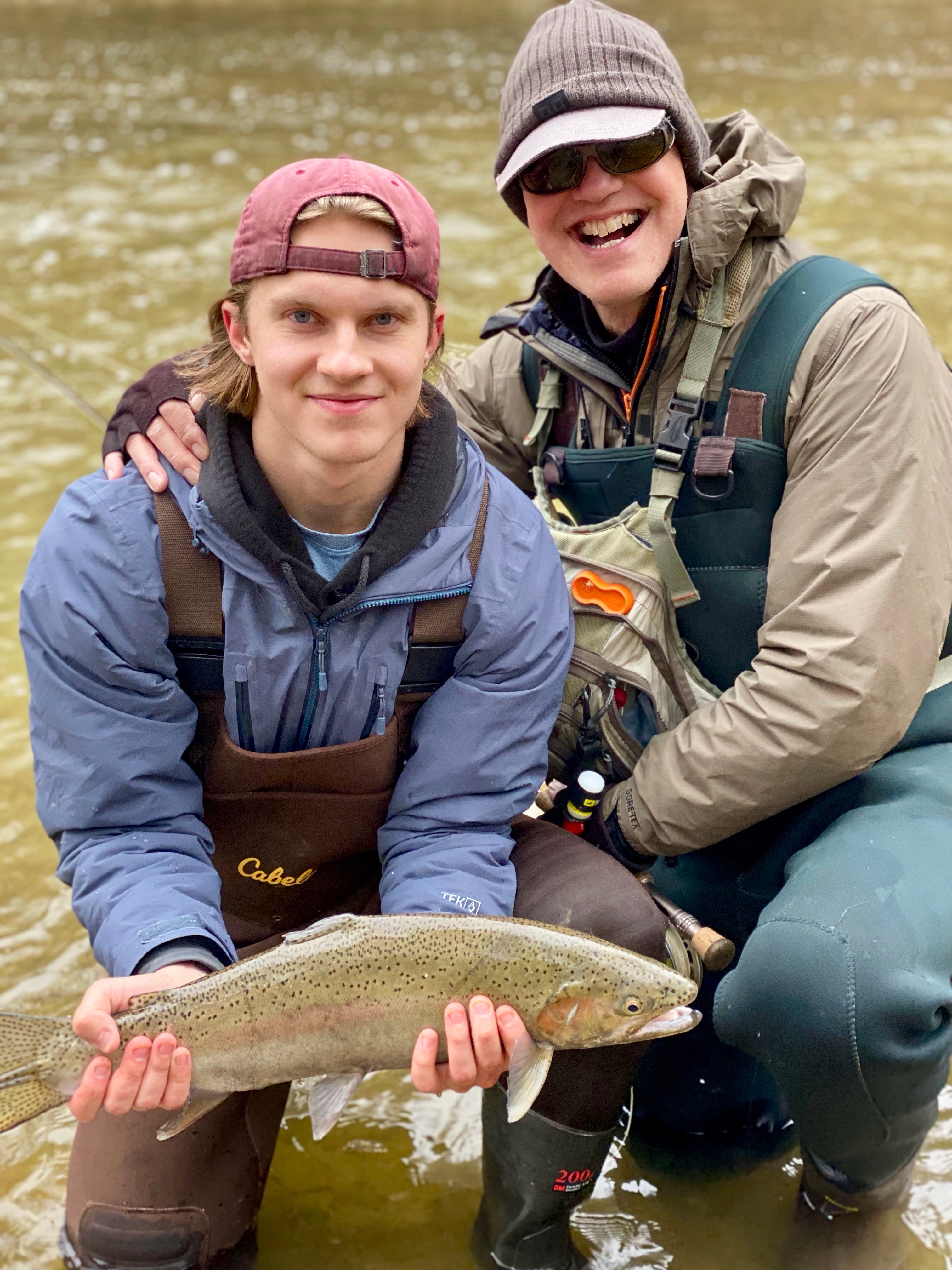 We worked our way downstream, banging away at pockets and runs that looked like good holding water. This lovely hen came out of a swirling pocket at the edge of a waterfall. I can’t say enough about the fine coaching Cam received from Bob Packey — and about Cam’s fly fishing. You see, Cam really doesn’t fly fish. But he gets it. Sure, he’s had experience landing steelhead on the fly rod (I used to hand my rod off to him when he was little and let him have at it) but as anyone who’s done it can attest, steelheading isn’t easy! Great job, Cam.