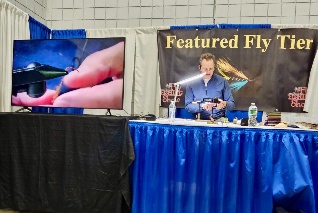 The 2024 International Fly Tying Symposium has come and gone, leaving in its wake many fond memories, new tying swag, and new acquaintances made. The event runs from Saturday to Sunday; Saturday is typically the busy day, with crowds dwindling by Sunday afternoon (it’s hard to compete with the NFL). If you’ve never been, you should, because it’s a tremendous opportunity to watch some of the best tyers in the world in action. You can meet them, watch them, talk to them, ask questions — I do all of that when I take a break and walk the room. There are private classes where you can receive personalized instruction. There are seminars that are included in the price of your ticket. And four times a day, featured fly tyers who tie and present to a small audience.