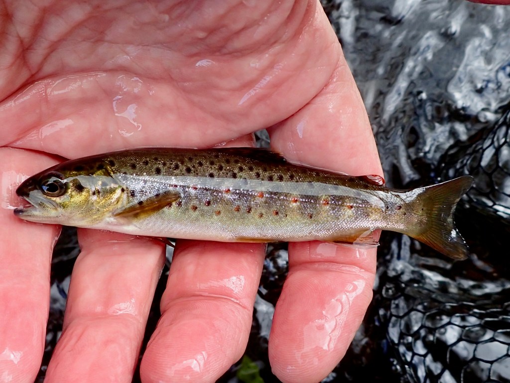 I had a window of opportunity, so I decided to try my luck with the evening rise, although, between you and me, I didn’t think there would be much of one. Turns out I was right. Kindof. I wanted to fish the lower river, which was running much higher at 730cfs. It was, to say the least, a tricky wade. I was in the water fishing at 6:15, and for quite a while, absolutely nothing was happening. I started debating the merits of fishing vs. having a couch date with my wife, but decided to stick it out, if for no other reason than scientific curiosity. Then I got into a fish. And another. It wasn’t gangbusters, and still nothing was happening bug- or hatch- or rise-wise, but I was catching trout and having fun. I stuck it out to 8:30. Moments before, I had declared that it was over, when a big wild brown slammed by fly. I don’t usually put fish on the reel, but this hefty brown told me I really should. Final tally was 15 hooked and 12 in the hoop. Not bad for high water and nothing going on.